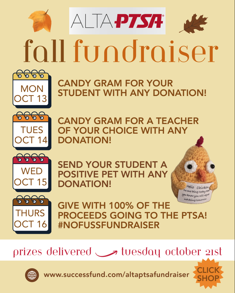 Share your love with your favorite students and teachers, while ALSO supporting the Alta PTSA! We will be asking for donations next week because we need to raise $10,000 to