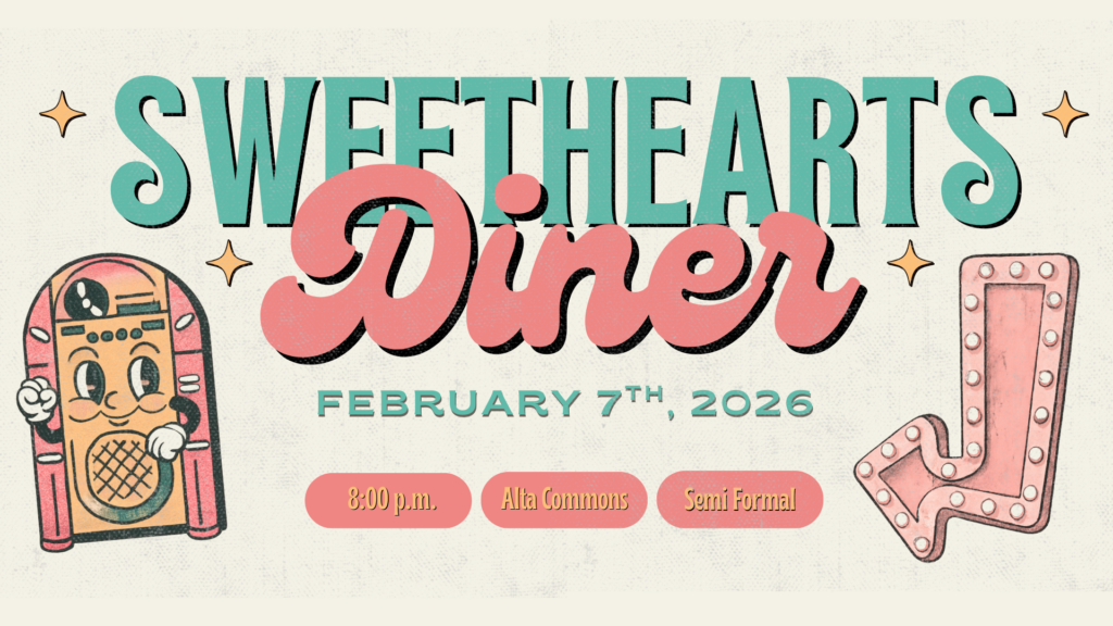 Come to the Sweethearts Diner Dance on February 7, 2026! It will be a semi formal dance at 8:00 PM in the Alta Commons.