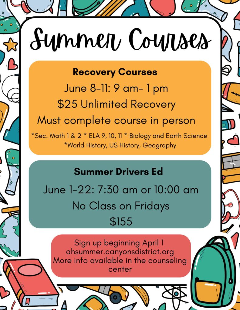 Alta High Summer Course Options Alta High School offers various options for summer courses. Registration begins on April 1, 2026 at ahsummer.canyonsdistrict.org. You will need to login with your current