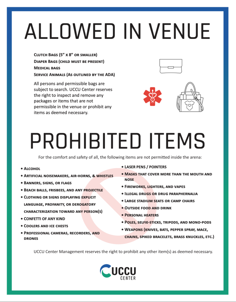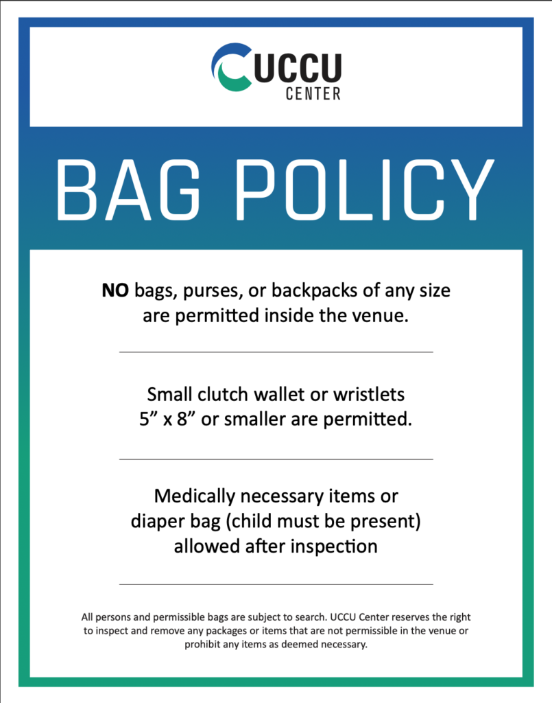 The UCCU Center has a No Bag or Clear Bag Policy.