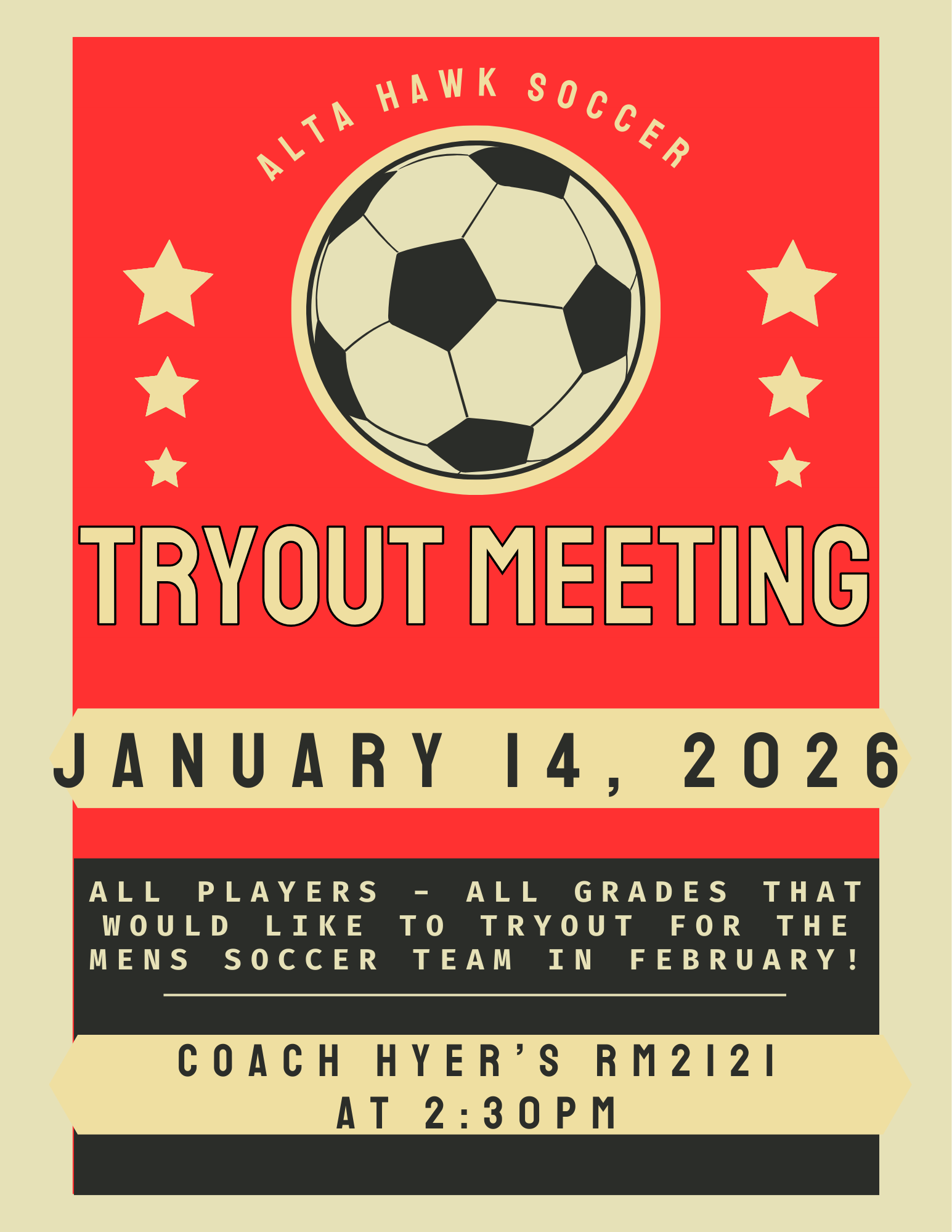 Alta Ballroom Presents Dancing with the Hawks! Come watch your fellow classmates take a dive into the Ballroom World and vote for your favorite team on December 9 at 7